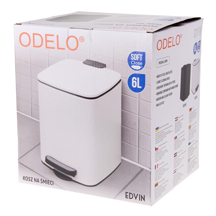 Kosz na śmieci ODELO EDVIN 6L kwadratowy biały 1szt.