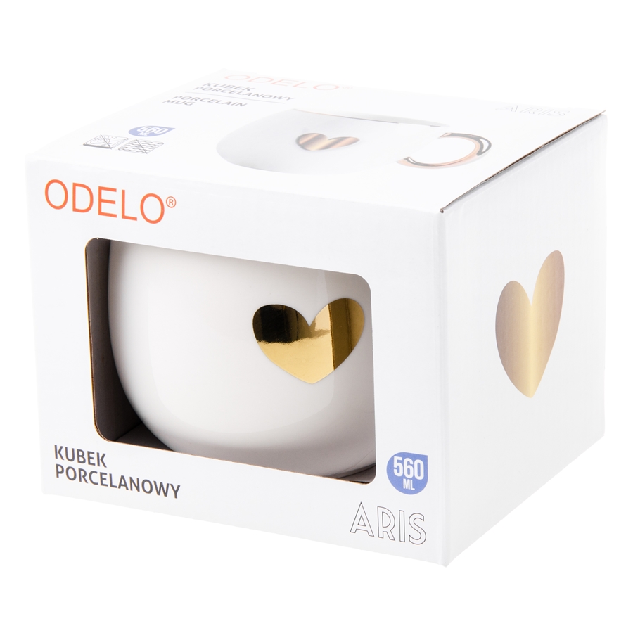 Kubek ODELO ARIS porcelanowy biały wzór serce 1szt.