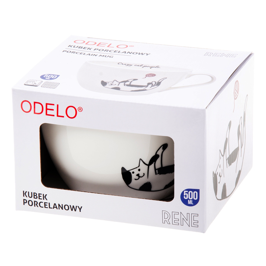Kubek ODELO RENE porcelanowy 500ml kot z piłką 1szt.
