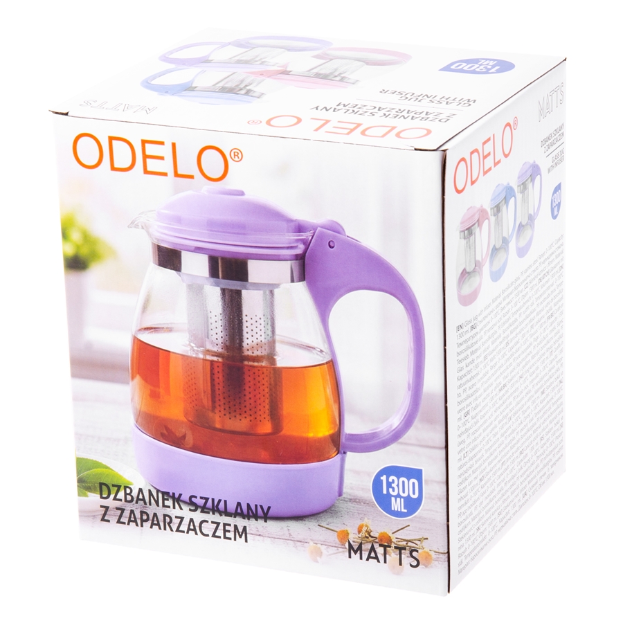 Dzbanek ODELO MATTS szklany z zaparzaczem fioletowy 1300ml 1szt.
