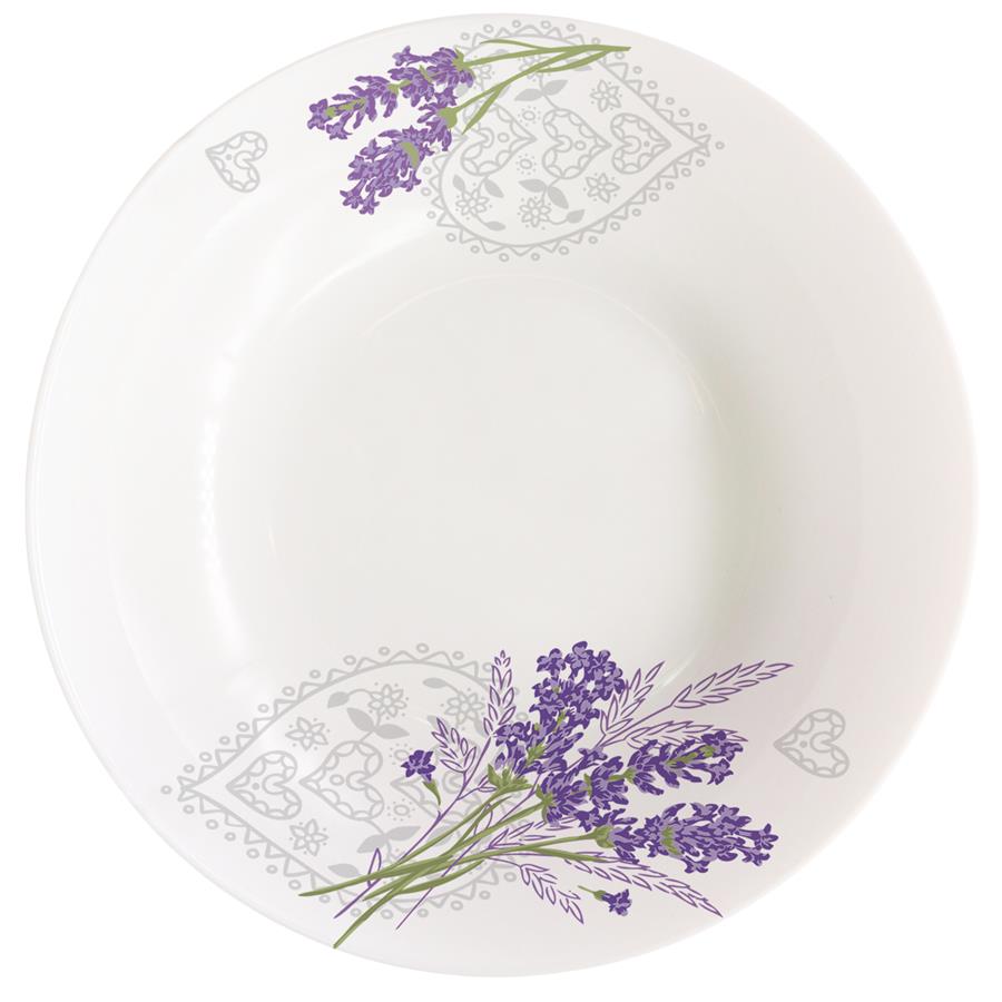 Komplet obiadowy ESMENE Lavender – 18 elementów dla 6 osób Wytrzymały komplet obiadowy wykonany ze szkła hartowanego, przeznaczony dla 6 osób. Zawiera 18 elementów – idealny na codzienne i wyjątkowe okazje. Odporny na uszkodzenia, nadaje się do zmywarki i mikrofalówki. Cechy Produktów wytrzymały na uszkodzenia oraz temperature możliwość użyciu w mikrofali jak i zmywarce elegancki z motywem lawendy 6x talerz obiadowy 6x talerz głęboki 6x talerz deserowy