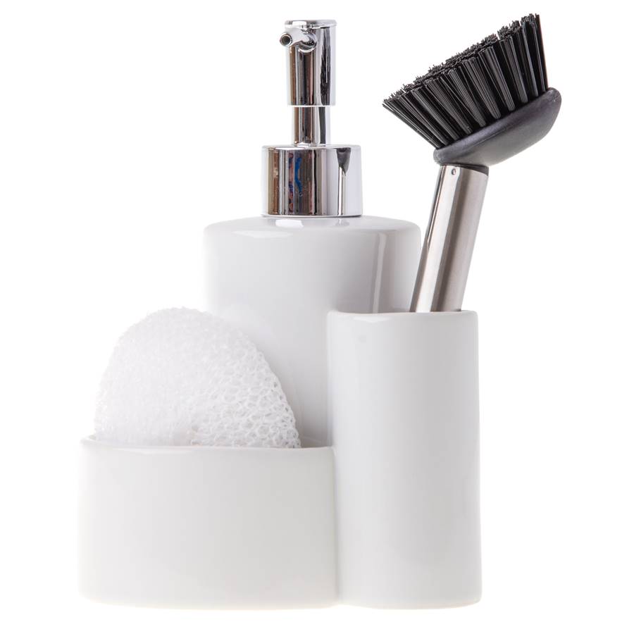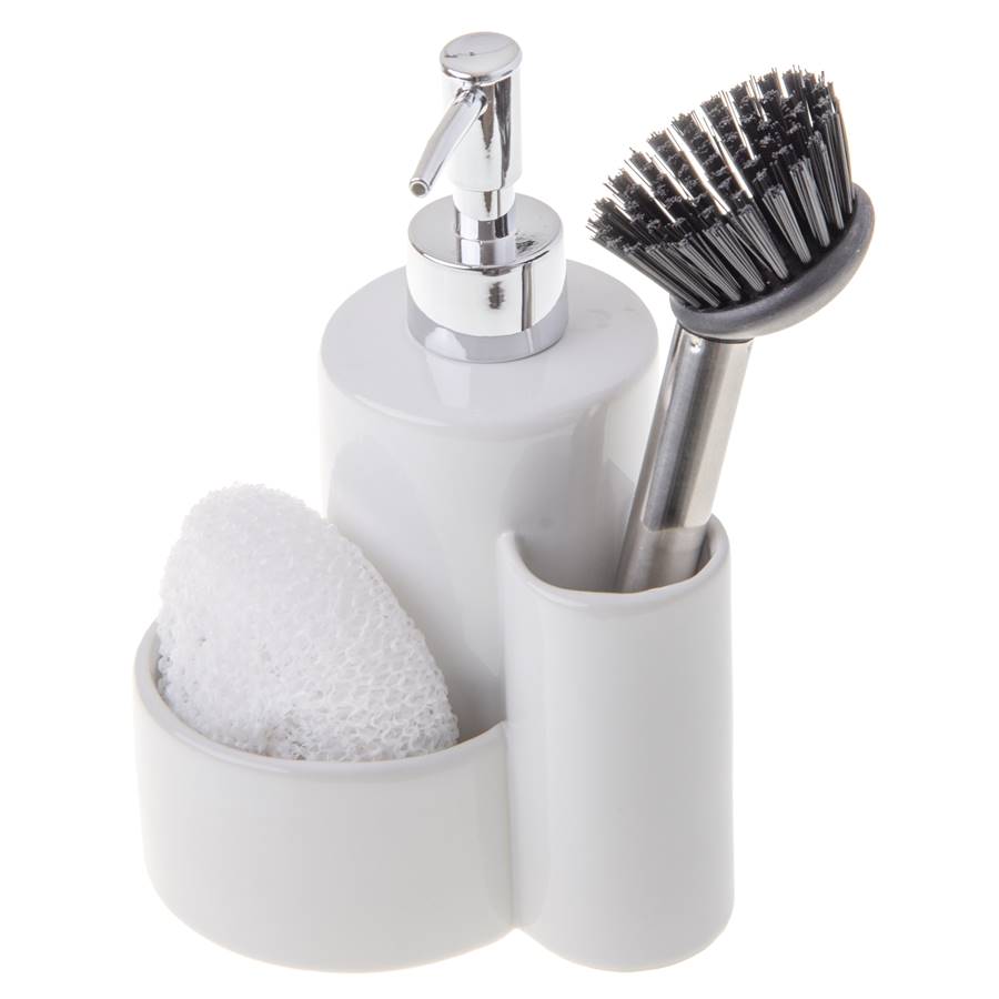 Komplet kuchenny ODELO LEONEL z gąbką i szczotką biały