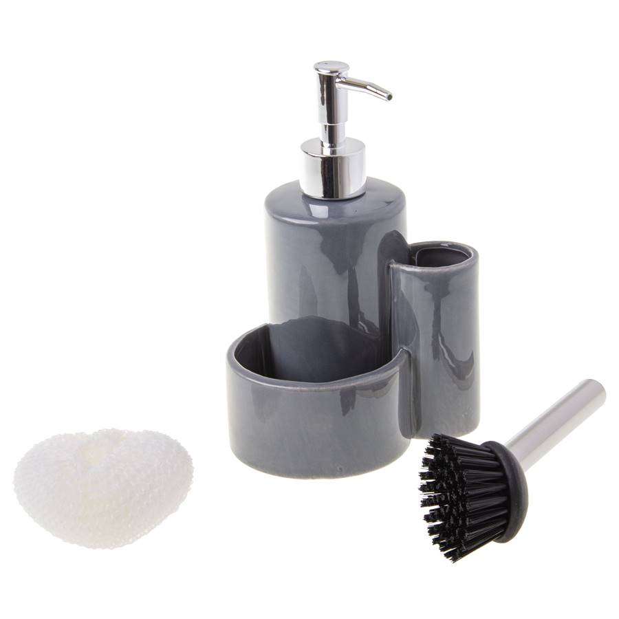 Komplet kuchenny ODELO LEONEL z gąbką i szczotką szary
