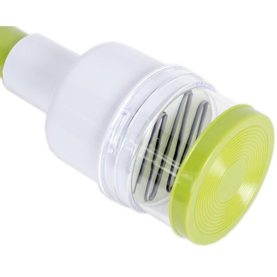 • Sposób siekania jest prosty, wystarczy kilka razy nadusić trzonek siekacza, a ostrza obrotowym ruchem schodząc w dół do zbiorniczka z warzywem posiekają je.