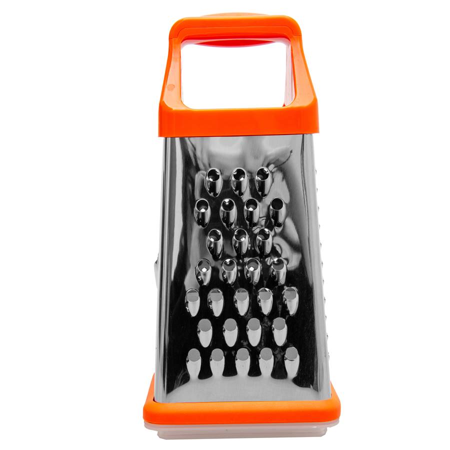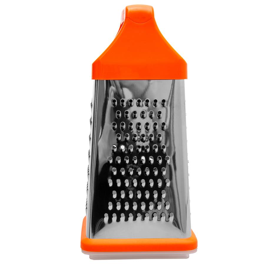 Czterostronna tarka z pojemnikiem – precyzja i wygoda w kuchni Wszechstronna tarka czterostronna umożliwia ścieranie na różne grubości, idealnie sprawdzając się do warzyw, sera, czekolady. Wyposażona w praktyczny pojemnik, który ułatwia zbieranie startych produktów i utrzymanie porządku na blacie. Antypoślizgowa podstawa zapewnia stabilność podczas użytkowania, gwarantując komfort i bezpieczeństwo. Niezastąpiona pomoc w każdej kuchni! Cechy produktów: wyposażona w pojemnik cztery różne strony do scierania antypoślizgowa podstawa wygodna rączka