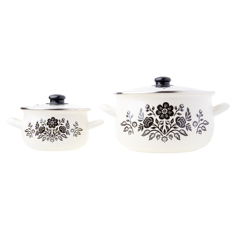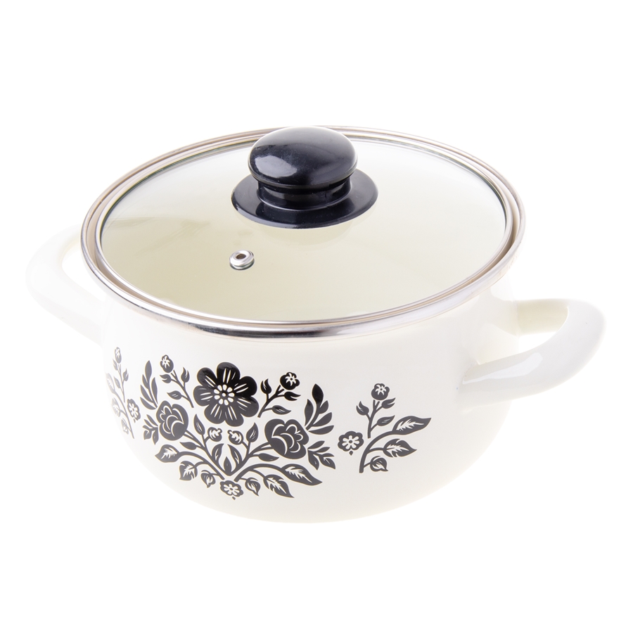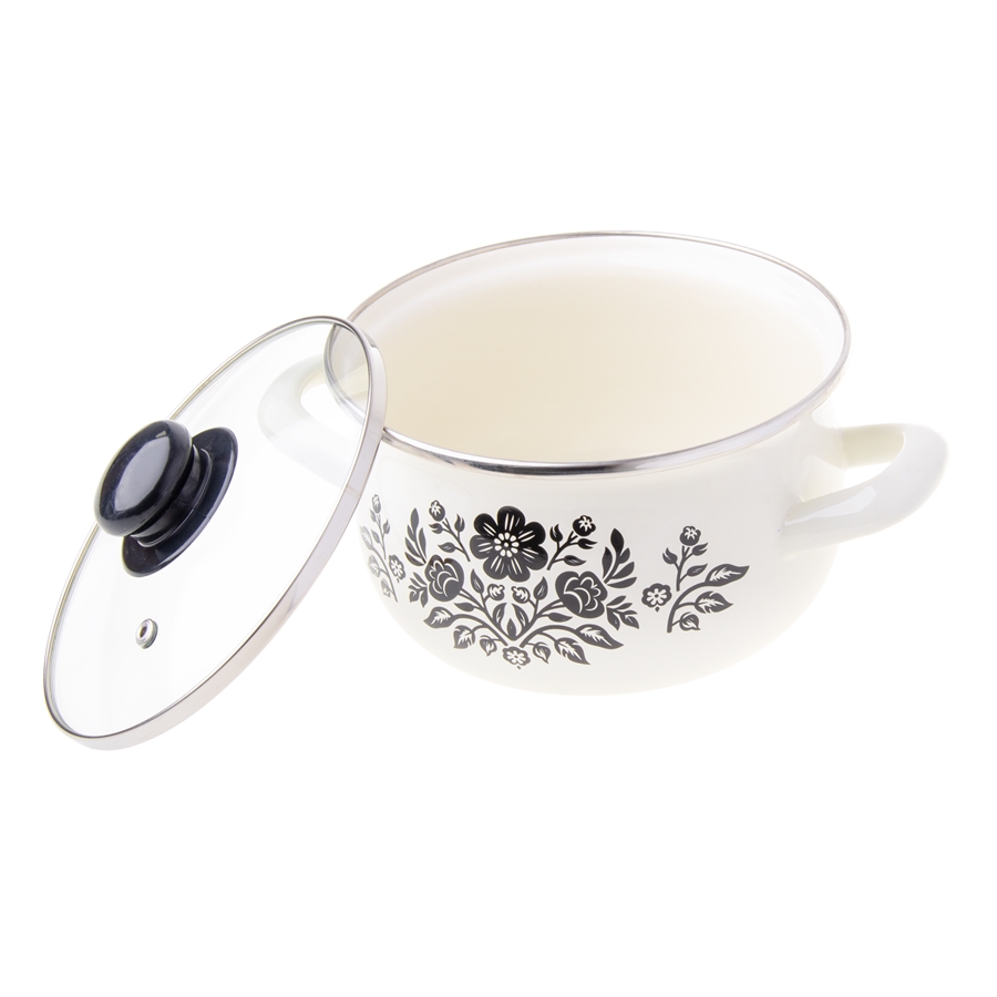 Garnek emaliowany ODELO KWIATY baryłka 20cm 3,8l kremowy 1szt.