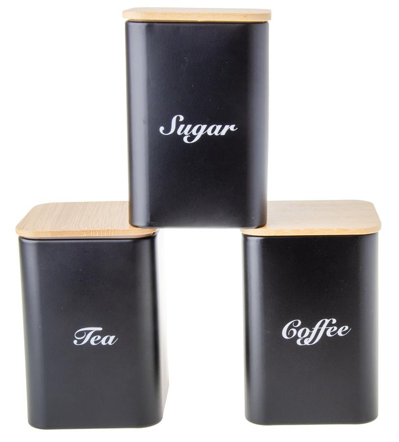 Komplet pojemników ze stali z bambusową pokrywą TANELI – elegancja i porządek w kuchni Nowoczesny zestaw 3 stalowych pojemników z eleganckimi bambusowymi pokrywami to stylowe rozwiązanie do przechowywania cukru, herbaty i kawy. Ich minimalistyczny design doskonale komponuje się z każdą kuchnią, łącząc estetykę z funkcjonalnością. Szczelne, trwałe i wyjątkowo praktyczne.